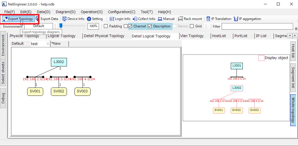 You can export the detailed logical tpology with clicking「Export topology」button.