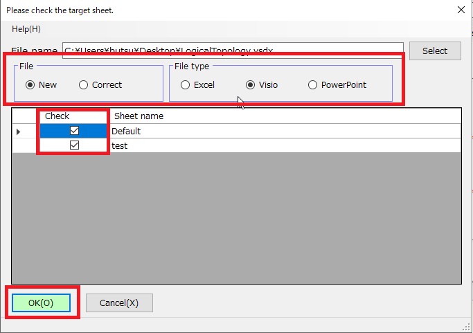 Please select the output sheet, etc. and click "OK" button.