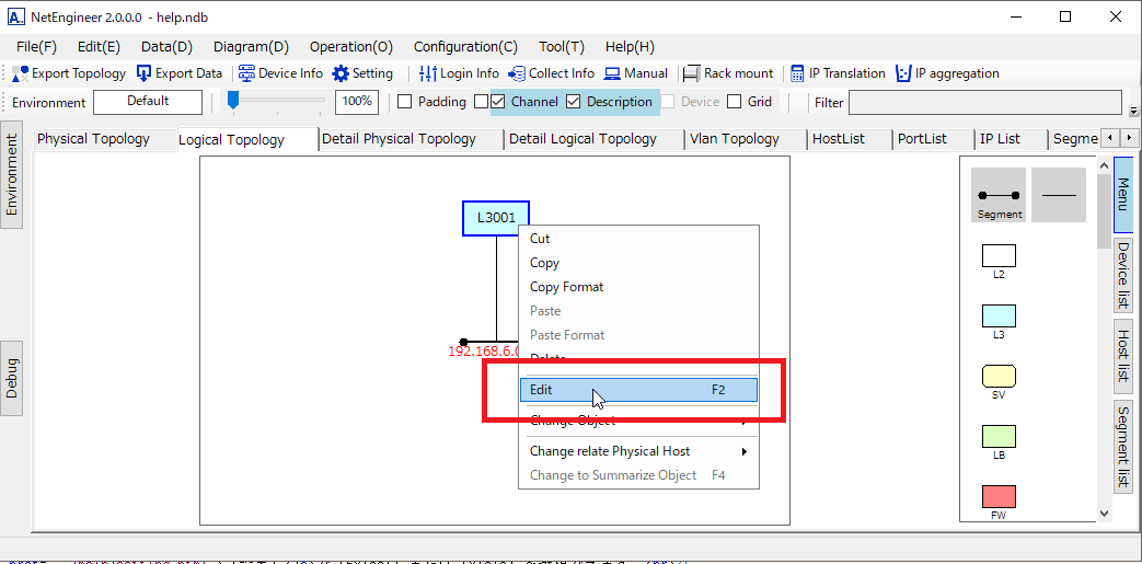 Please select "Edit" with right click menu.
