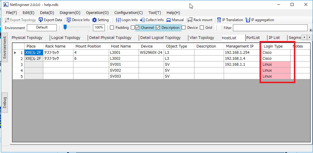 Please enter "Login type" of "Host list". "Login type" for which login information does not exist is displayed with a pink fill.