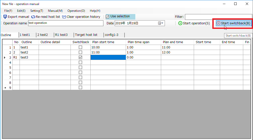 Start switchback according to the operation manual. Please click the "start switchback" button.
