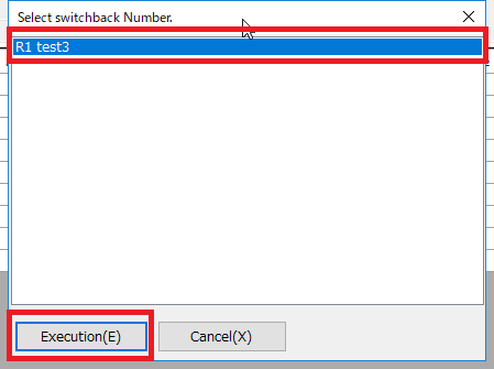 The incomplete switchback operation is displayed in the list. Please select the target work and click "execution" button.