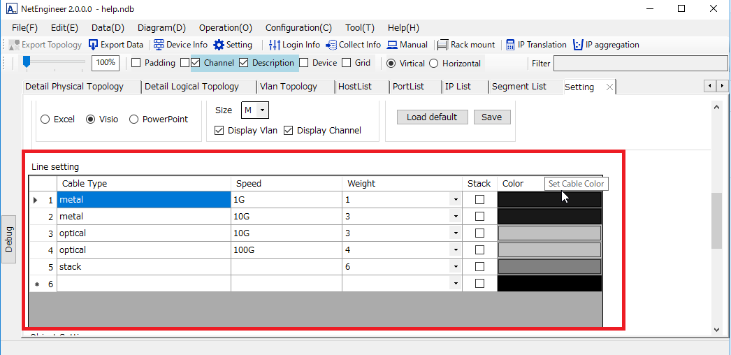 「Line type」・・・You can set the line type. Please set up optical, metal etc.