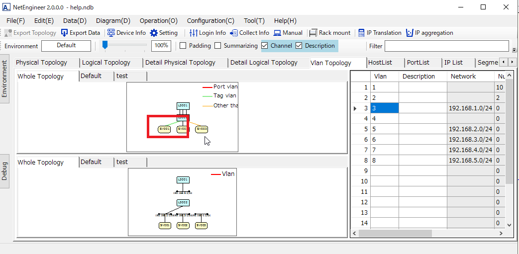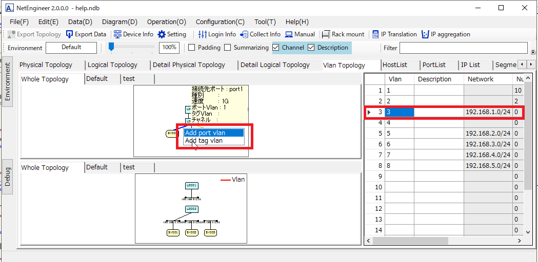 Select the Vlan you want to add from the Vlan list, click the topology diagram, and select "Add tag vlan" from the choices.